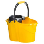 El Escurridor Para Cubo Ovalado 15 L se ancla perfectamente al borde redondeado del cubo con su sistema de clips, para que no se desprenda durante el escurrido de la fregona.